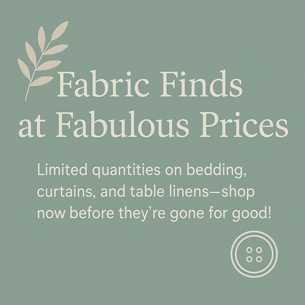 We’re offering incredible deals on some of our favorite fabric finds—bedding, curtains, pillows, table linens, and more! Quantities are limited, and once they’re gone, they’re gone for good. Now is the perfect time to refresh your space with beautiful, high-quality pieces at unbeatable prices. Shop the outlet section today and grab your favorites before they sell out!