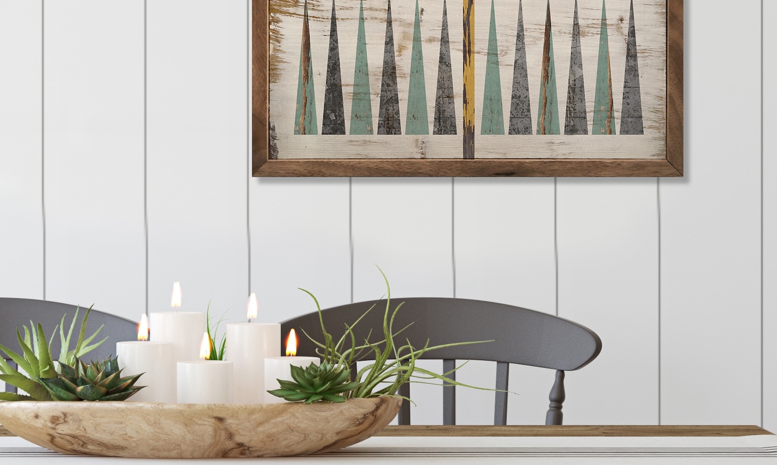 The final board game in the quartet is the lovely Backgammon Wooden Sign, featuring the same subtle tones in elongated triangles that bring interest and energy to every setting.