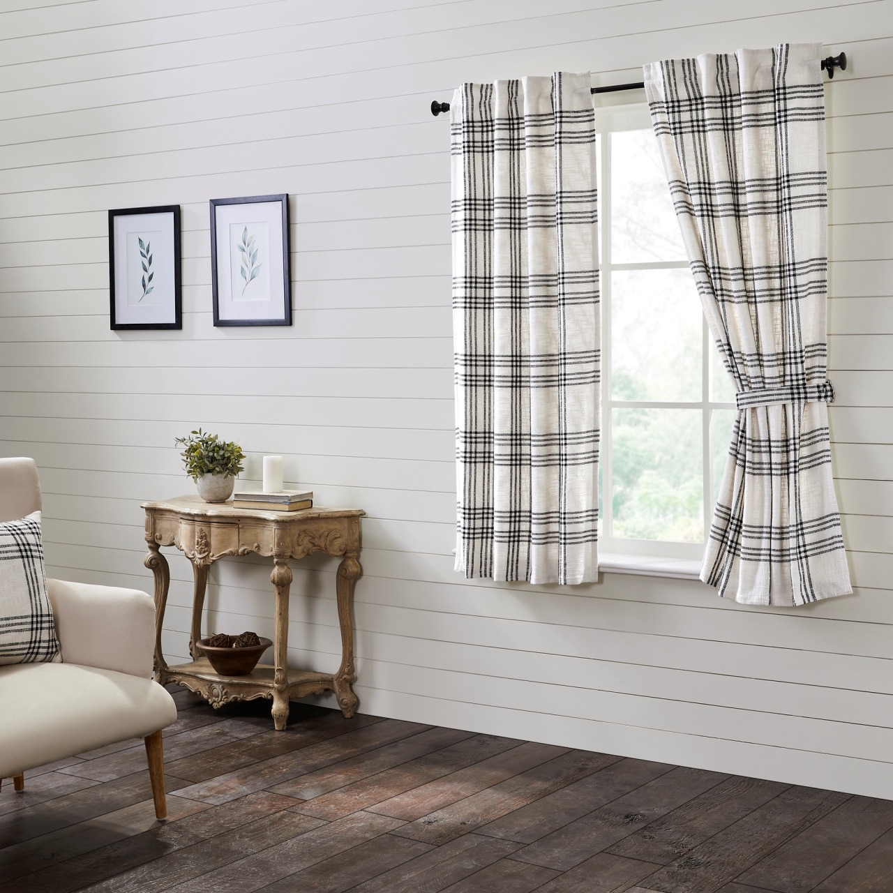 Bypass the glare of the sun while adding farmhouse decor to your windows with the Black Plaid Panel. Soft white cotton lines the inside of the panels with a straight edge, textured woven technique that showcases the beautiful soft black and white hues. Easily hang the cottage-style plaid panel set with either the 3.25” diameter rod pocket or back tabs. Set/2.