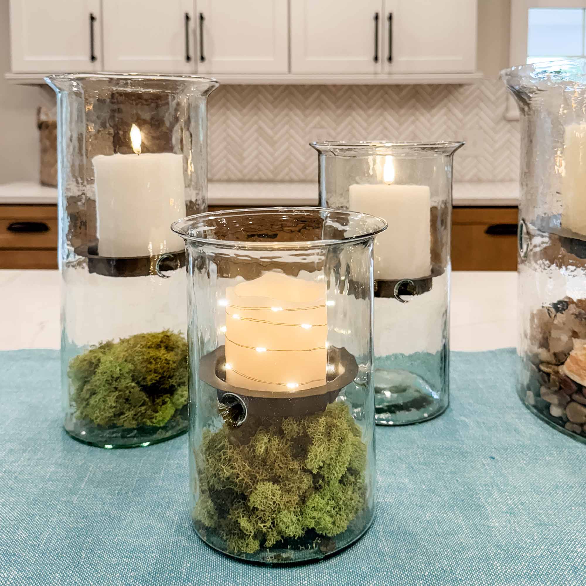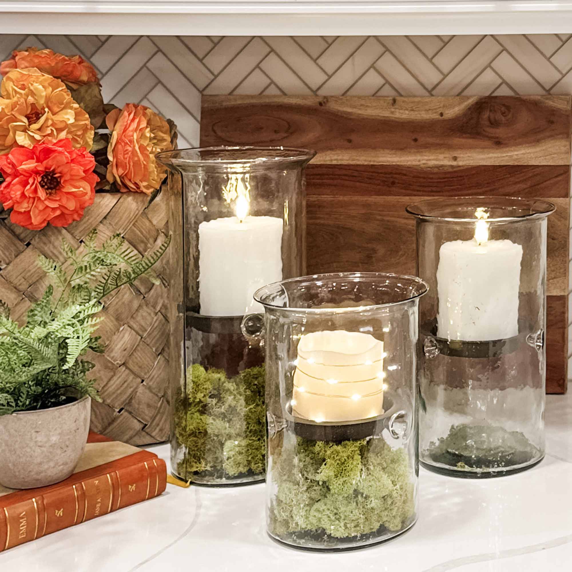 What sets this hurricane apart is its fillable base—perfect for showcasing your favorite seasonal accents. Add sand and shells for a beachy vibe, or switch things up with pinecones, potpourri, coffee beans, fresh herbs, colored stones or beads. The possibilities are endless, and the look is always fresh. Designed for both function and flair, it’s a beautiful way to personalize your space throughout the year. Pair with the Large and Small Fillable Hurricanes for endless possibilities.
