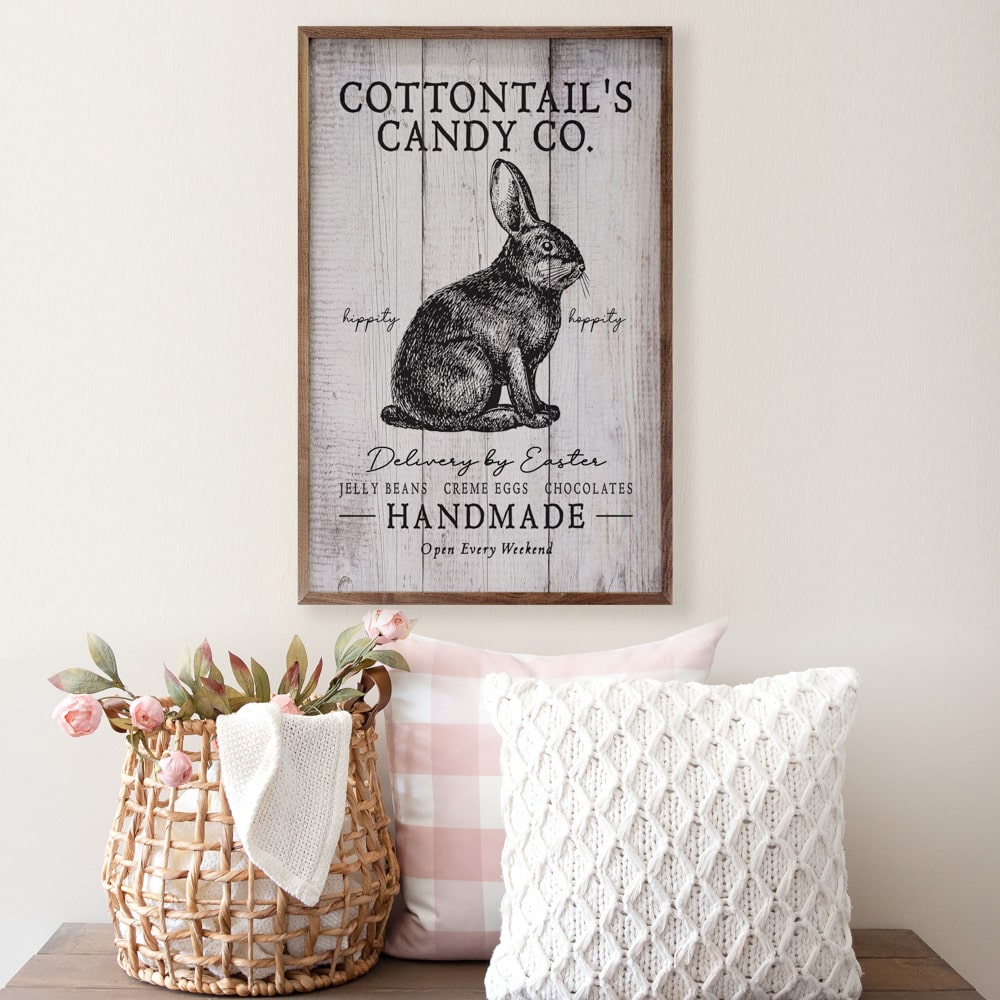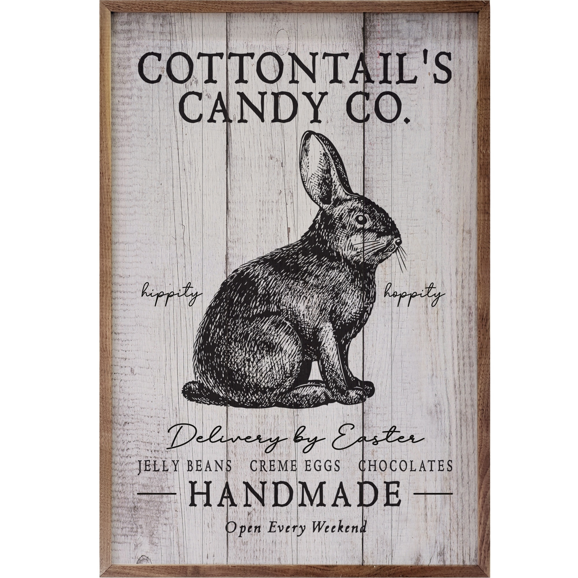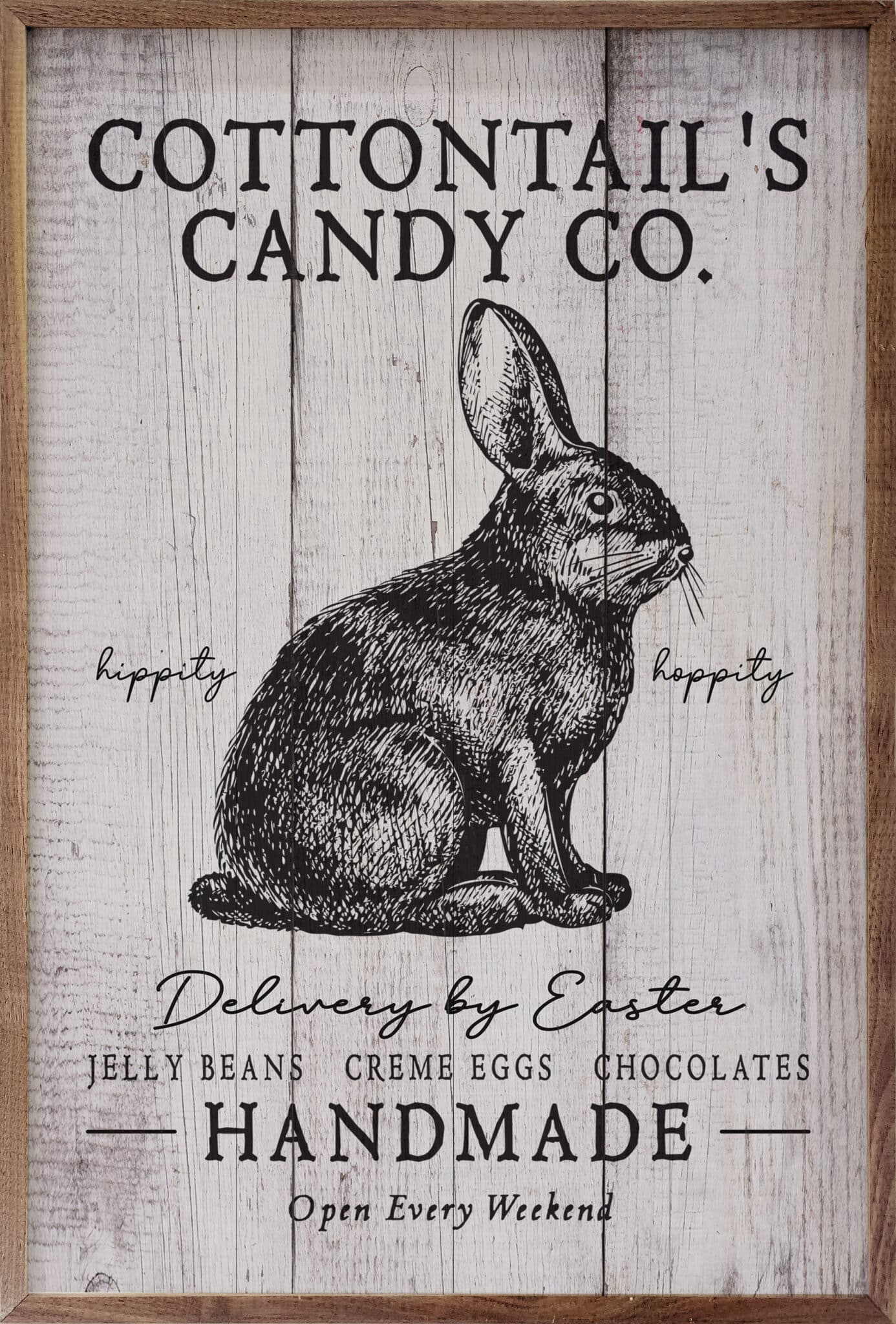 Bring vintage farmhouse charm to your Easter décor with the Cottontail’s Candy Co. Bunny Wooden Sign. Designed with a rustic whitewashed wood plank background, this sign features a beautifully detailed black ink bunny illustration alongside whimsical lettering that reads “Hippity Hoppity” and “Delivery by Easter.” Perfect for adding a festive yet timeless touch to your kitchen, entryway, or mantel, this 10″ x 16″ framed sign captures the nostalgia of an old-fashioned candy shop, complete with a nod to handmade Easter treats. The natural wood frame enhances its classic appeal, making it a delightful addition to your spring décor or a thoughtful gift for any bunny lover! Signs are made to order.