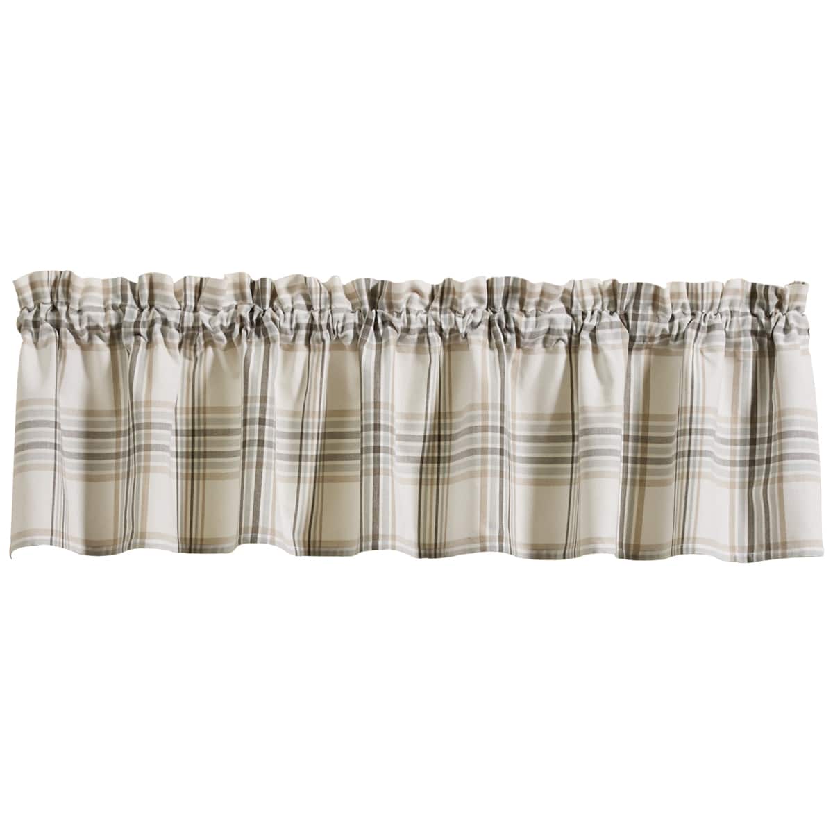 Elevate your windows with the soft elegance of this plaid valance, designed in a tranquil blend of light gray, taupe, and misty blue. Its subtle color palette creates a calming and inviting ambiance, making it a perfect addition to farmhouse, coastal, or cottage-inspired spaces. Crafted from high-quality cotton, this valance drapes beautifully, filtering natural light while adding a refined touch to your décor.