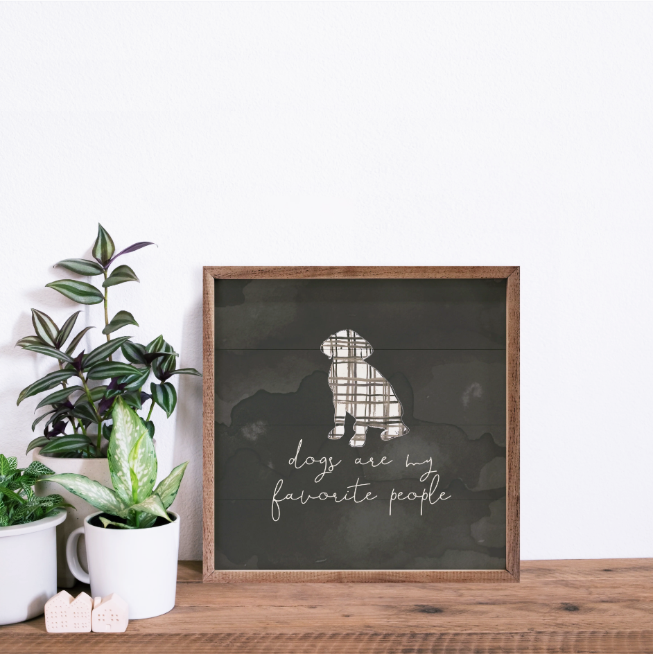 This playful and heartwarming sign features a plaid silhouette of a dog set against a dark washed gray wooden background, creating a cozy, farmhouse-inspired look. The phrase “dogs are my favorite people” is written in relaxed, lowercase script across the center, adding a casual charm that perfectly suits any dog-loving home. Whether hung in a hallway, mudroom, or beside your pup’s favorite napping spot, this sign is a sweet nod to the unconditional love our furry friends bring into our lives. Signs are made to order.