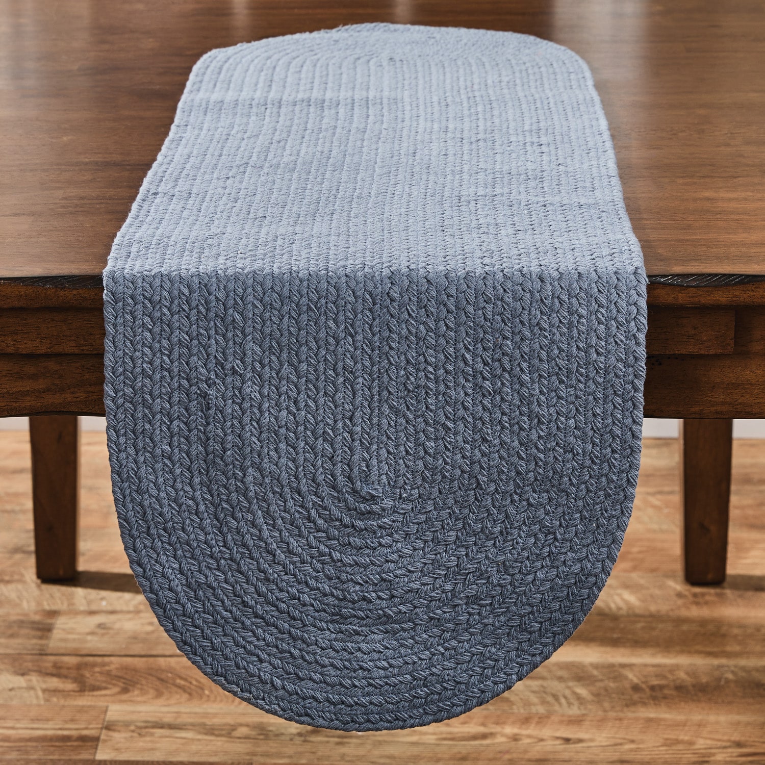 Add warmth and style to your table with the Elements Marine Blue Table Runner. This 54-inch runner features a deep, denim-inspired blue hue that instantly grounds your space with a classic, cozy feel. Made from durable braided cotton, it’s perfect for both everyday use and seasonal gatherings. The rich texture and timeless color make it a standout piece for farmhouse, cottage, or coastal interiors. Whether layered with placemats or used as a centerpiece foundation, this runner creates a polished, welcoming look you’ll enjoy all year long.