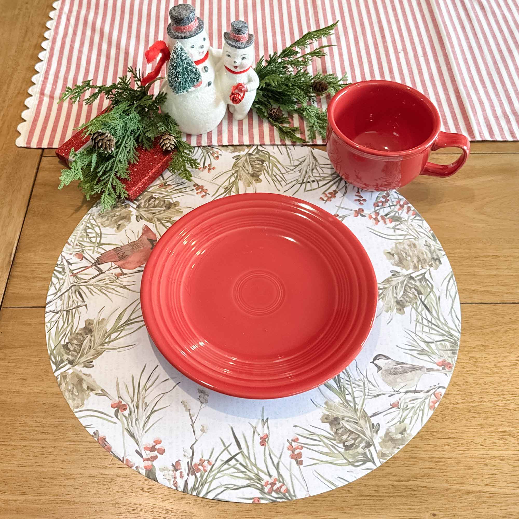 Set a festive table with the Evergreen Cheer Paper Placemats. Featuring watercolor-style greenery, designed by artist Lisa Audit, circling the edge and a soft gray plaid center, these round placemats strike the perfect balance of rustic charm and seasonal elegance. Designed for single use, they make entertaining simple by adding a polished holiday look while making cleanup quick and easy. Each pack of 24 comes shrink-wrapped for protection and tidy storage, ensuring you’re always ready to host gatherings with ease. Perfect for layering under dinnerware, holiday buffets, or casual Christmas brunches.