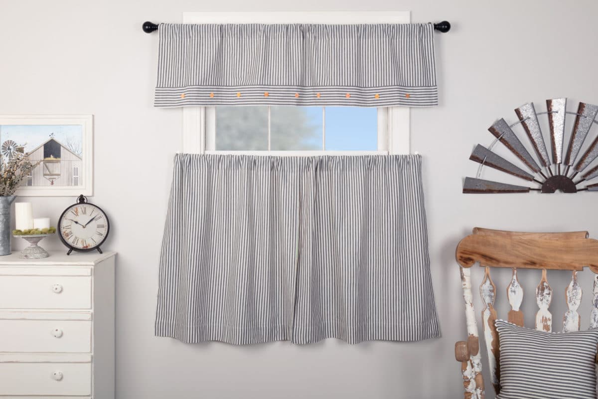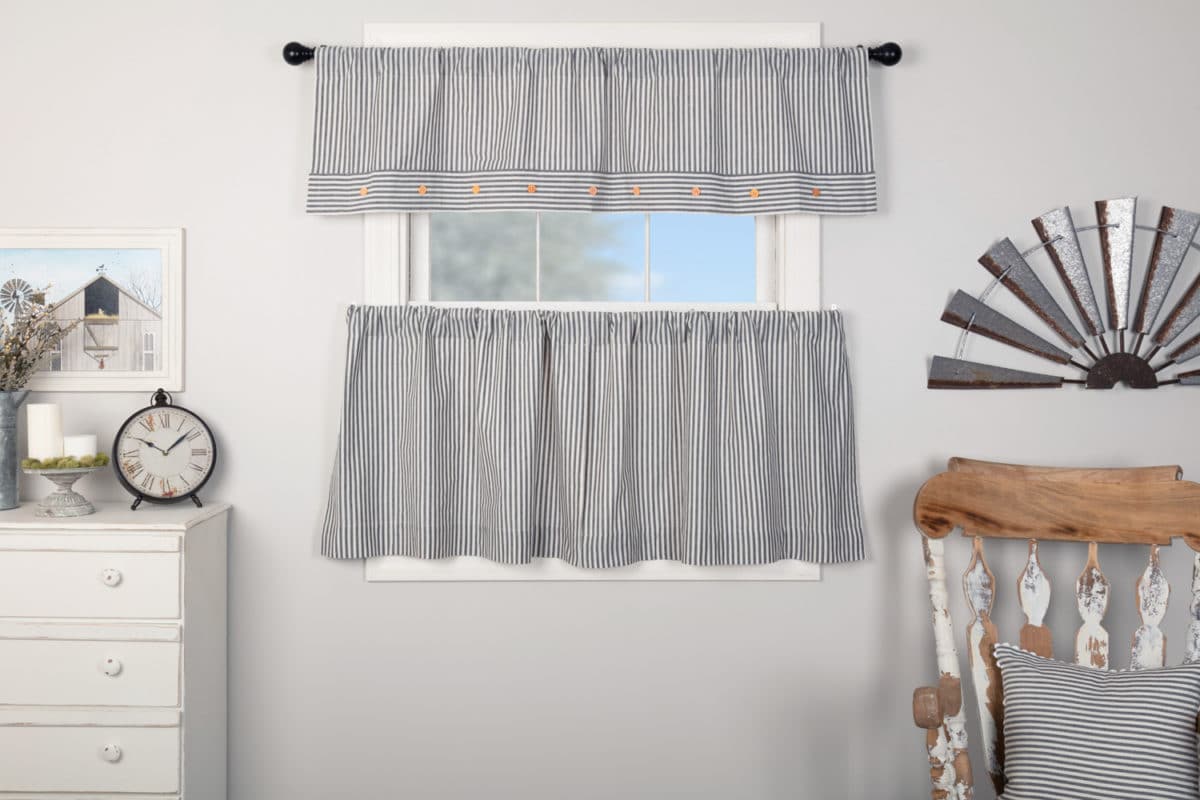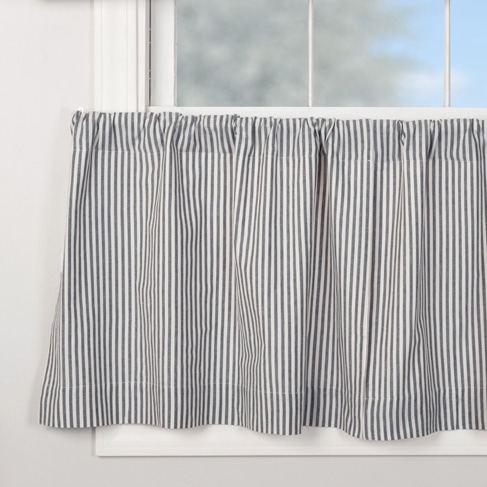 The Farmhouse Ticking Blue Collection is available exclusively at Piper Classics and we think it’s the perfect addition to your country farmhouse decor. The Lined Tiers feature a woven denim blue ticking stripe on antique white base, lined with white cotton. Tiers provide added privacy or coverage and are the perfect complement to our valances and swags. The ever-popular, classic style remains fresh and up-to-date, coordinating effortlessly with other fabric collections for a mix-and-match look. Set/2.