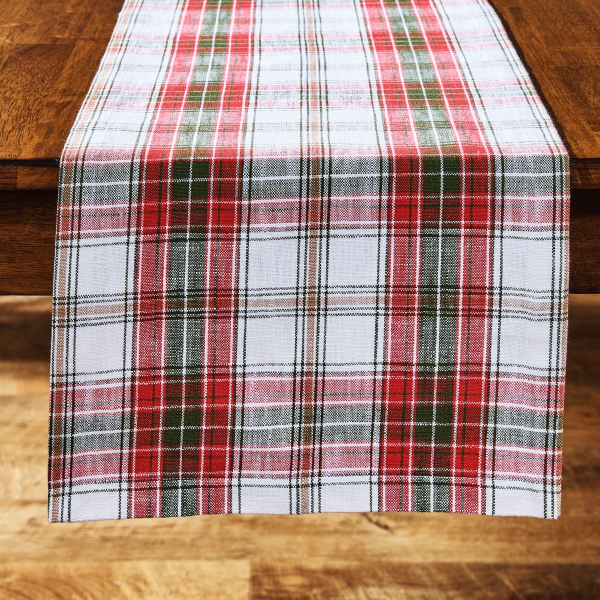 Set the tone for a cozy, inviting dining experience with the Fraser Plaid 72″ Table Runner. Crafted from 100% cotton and woven in a richly textured herringbone plaid, this longer runner offers full coverage for larger tables while maintaining a warm, welcoming feel. The earthy color palette—featuring forest green, deep brown, taupe, and soft ivory—captures the essence of winter woods and pairs beautifully with everything from rustic wood accents to elegant holiday dinnerware. Whether you’re hosting a seasonal gathering or dressing your table for everyday comfort, this runner adds both charm and versatility.