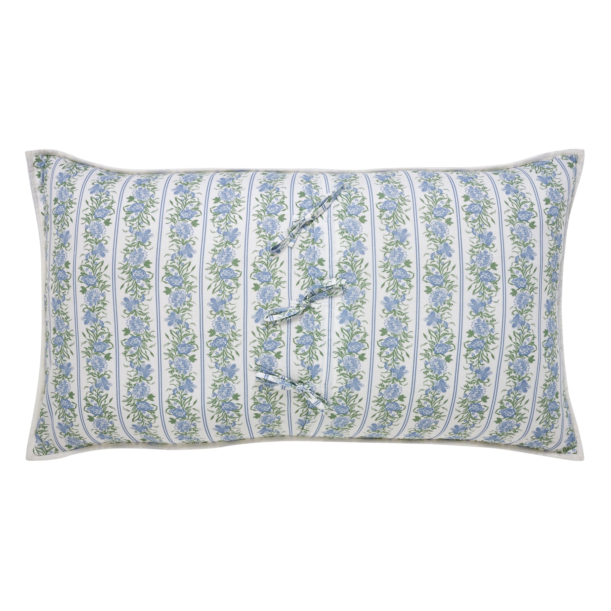 You love a classic bedding set in soft colors with cottage charm and vintage style. The Jolie Fabric Sham is perfect for bright spaces with its fresh white blocks and medallion-style prints in soft basil green and dusty blue arranged in a quilted Ohio Star pattern. The classic country pillow sham features a sturdy stitch in the ditch quilting technique and soft, cotton fabric and batting for an heirloom quality look and feel. Reverses to an elegant vertical stripe and vine pattern with matching tie-style closures. Coordinates with the Jolie Collection for a complete country cottage look. Machine washable and iron safe for easy care.