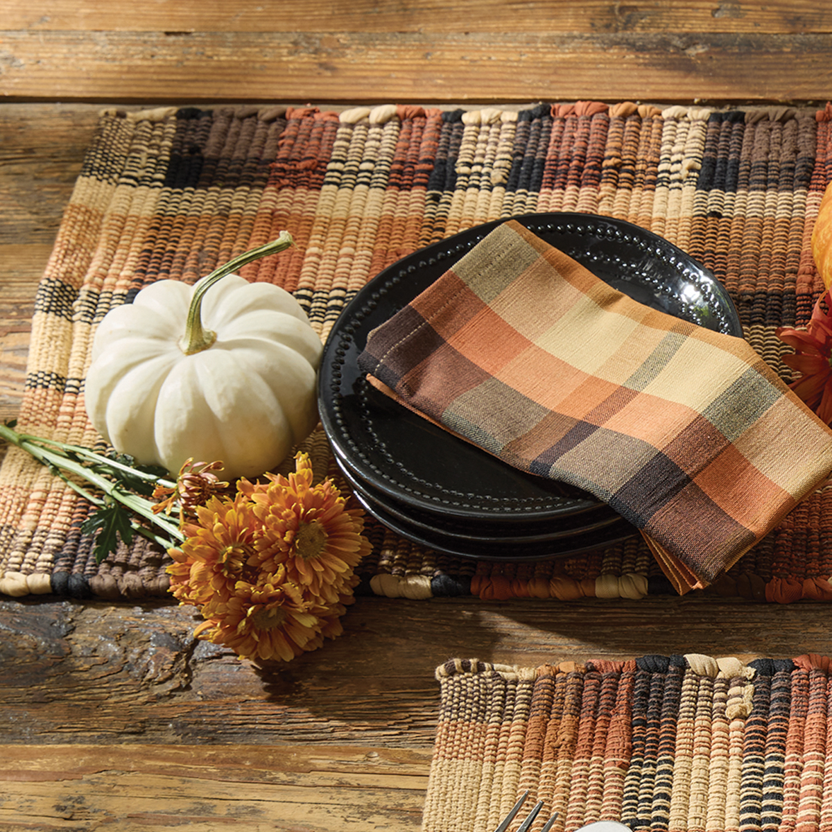 Transform your dining table into a harvest-ready gathering space with the 54″ Let’s Go Pickin’ Table Runner. Crafted from handwoven 100% cotton, this runner features a chindi-style weave and classic plaid pattern in rich autumn colors. The warm, cozy tones and natural texture set the stage for seasonal meals, whether you’re serving Thanksgiving dinner or a weekend brunch with apple cider and spiced muffins. Layer it over a solid tablecloth or use it alone for a laid-back farmhouse vibe.