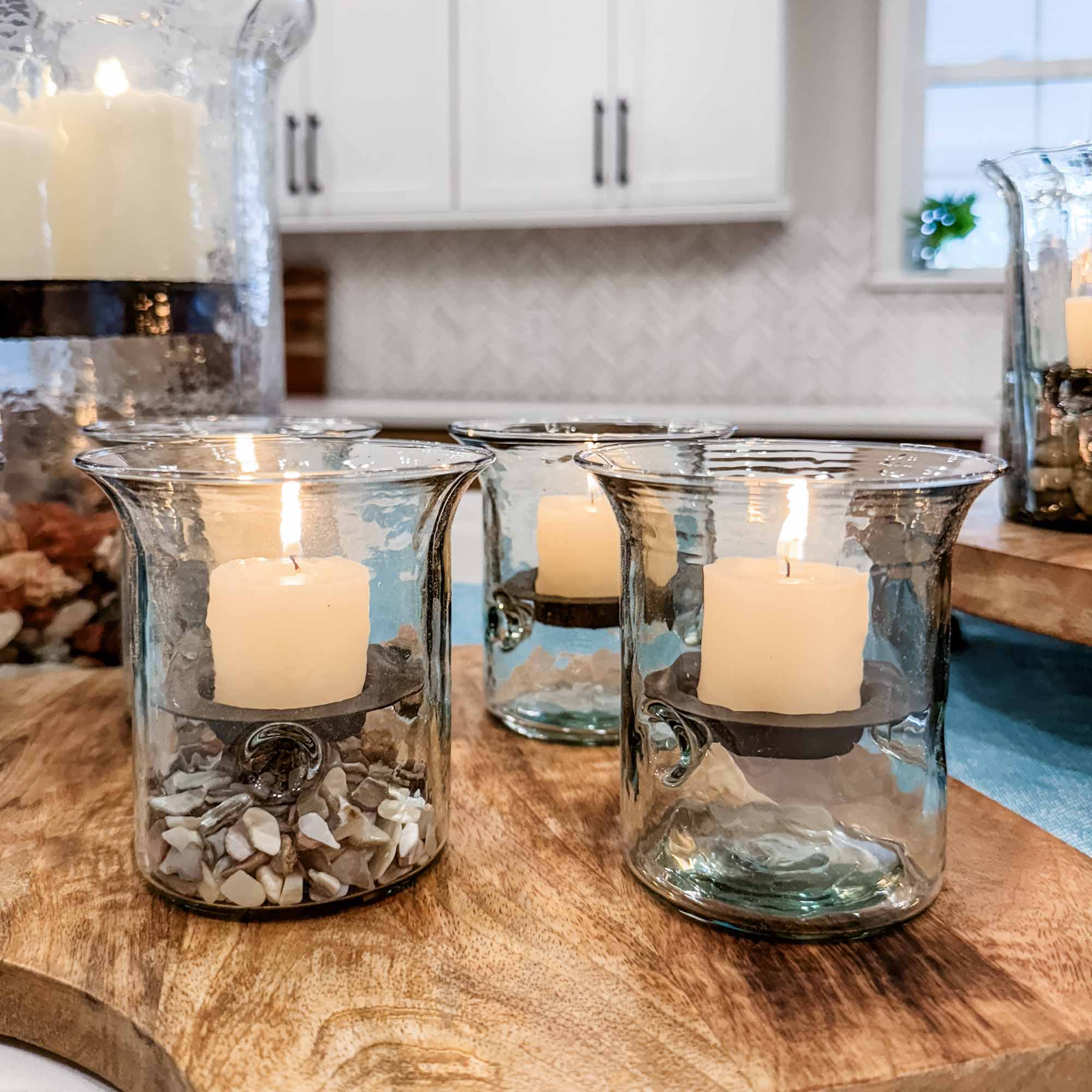 These versatile vessels go beyond candlelight. Fill them with tiny succulents, sea shells, pebbles, or other natural accents to suit your style and season. Whether used for ambiance or decoration, this charming set brings warmth, creativity, and character to any setting.