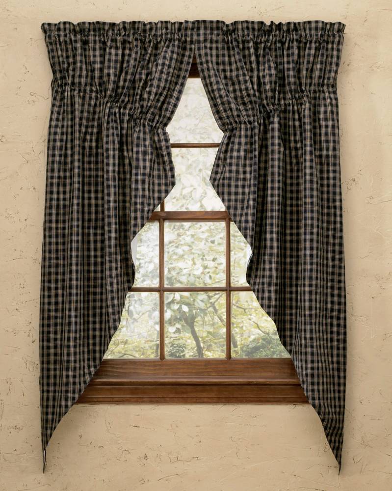 The Sturbridge Black Lined Gathered Swag brings classic charm and soft sophistication to your windows. Featuring a traditional black and tan plaid pattern, this fully lined swag is designed with a drawstring that allows you to adjust the gather to fit a variety of window widths. The gathered style creates a graceful, arched profile that adds warmth and texture to any room. Ideal for farmhouse, colonial, or primitive decor, it offers both style and light-filtering function in one timeless piece.