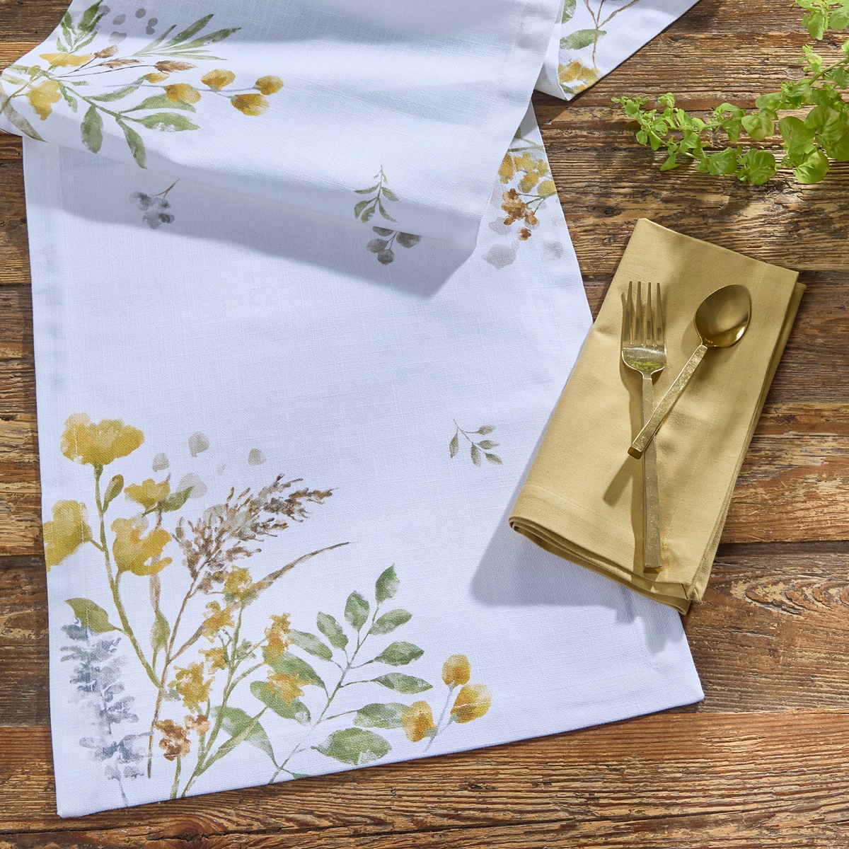 Perfect for larger tables, the Tessa 72″ Table Runner offers graceful length and style. Its clusters of floral design in soft, natural hues creates a welcoming backdrop for meals year-round. Made from 100% cotton, this runner combines everyday practicality with timeless botanical beauty.