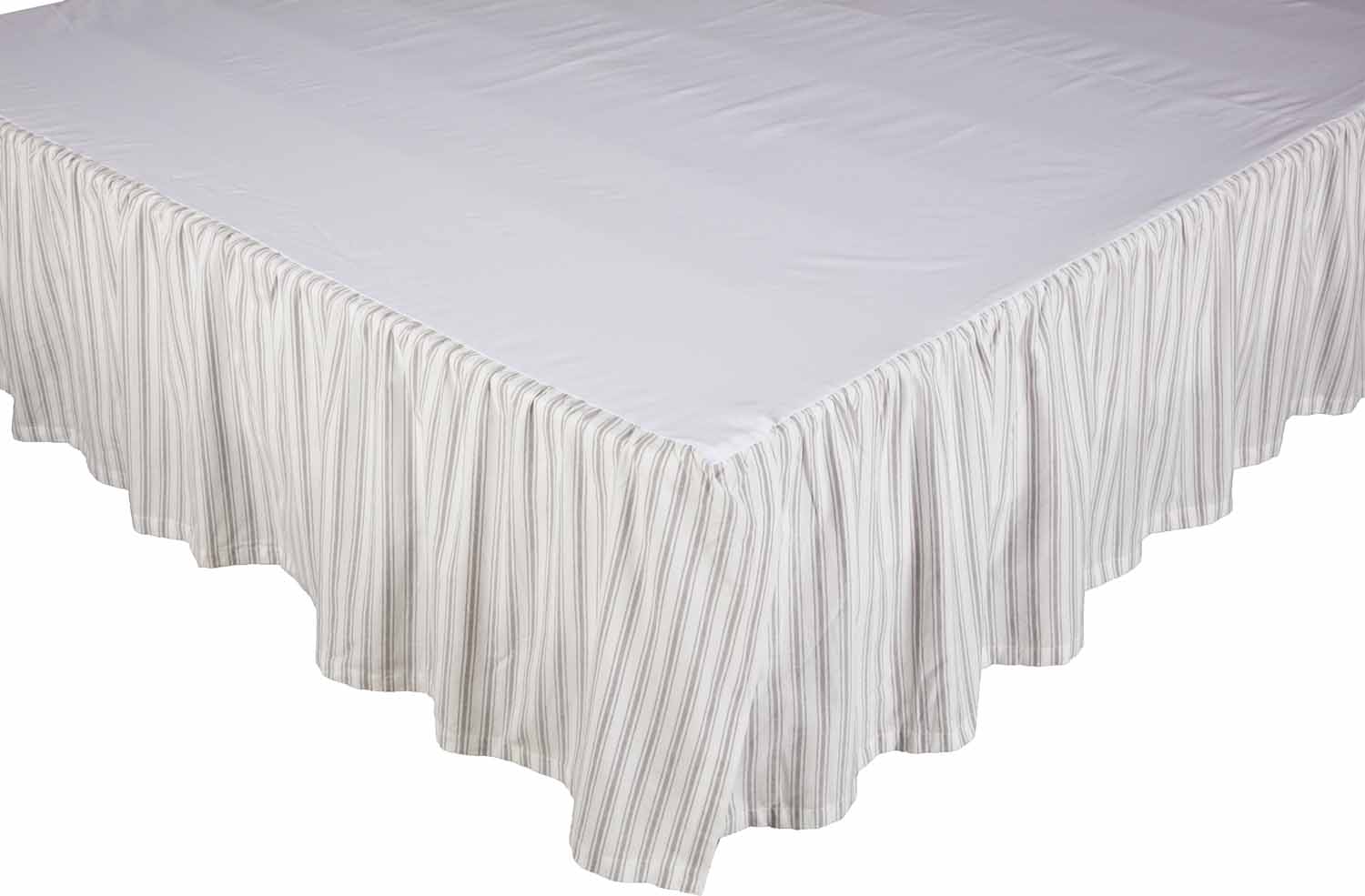 The bed skirt brings softness and flirty flounce with ticking that is gently-gathered into ruffles that cascade toward the floor from the deck fabric. The flowing ruffles create volume and dimension and feature a graceful scallop for a delightfully finished edge. Adding the skirt to your bedding ensemble ensures that you’ll have the bedframe fully hidden with luxurious fabric, even if the bedspread is pulled back or the bed is unmade.